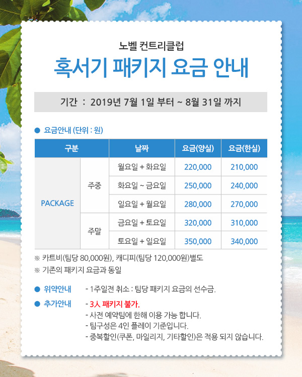 혹서기 패키지 요금 안내