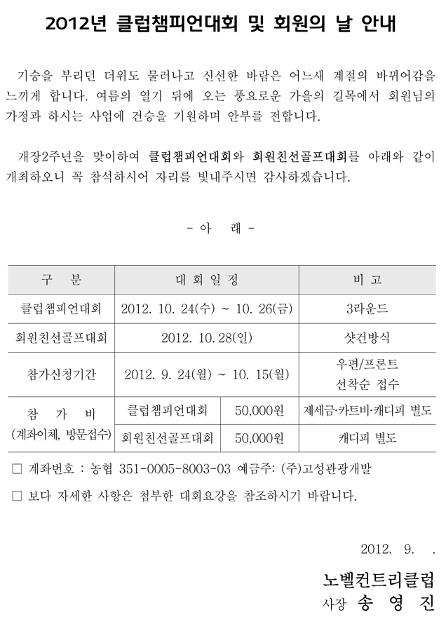 클럽챔피언대회 및 회원친선골프대회